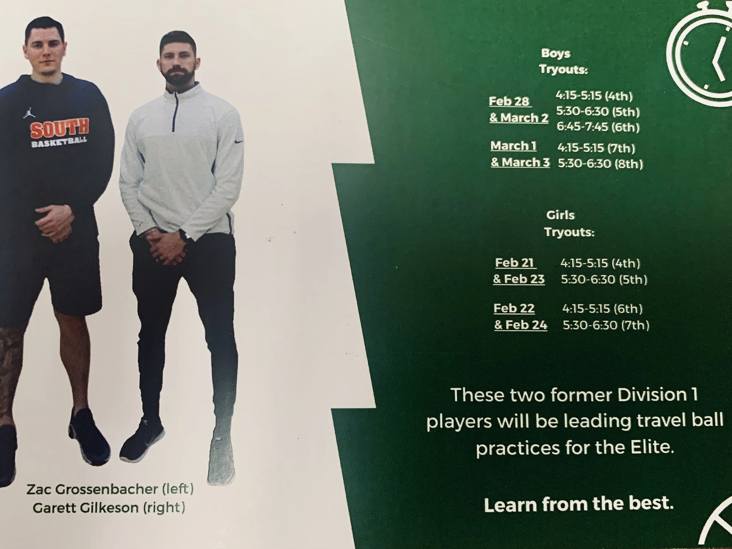 Elite Travel Team tryout information below….